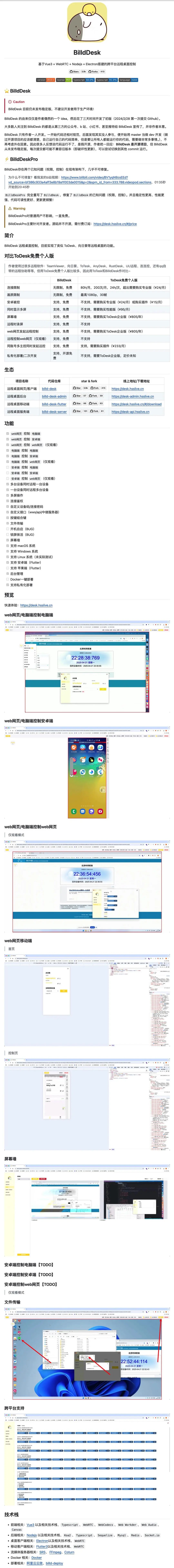 BilldDesk 是由 galaxy-s10 开发的一款基于 Vue 3 + WebRTC + Node.js + Electron 的开源跨平台远程桌面控制工具,支持多种设备之间的远程访问与控制。它兼容网页、Windows、macOS、Linux(实验)、Android、iOS 等,功能对标 ToDesk、RustDesk 等知名产品,但完全免费开源(MIT 许可)。