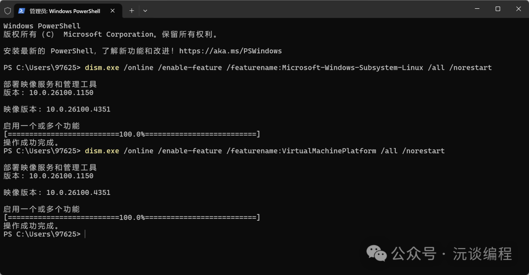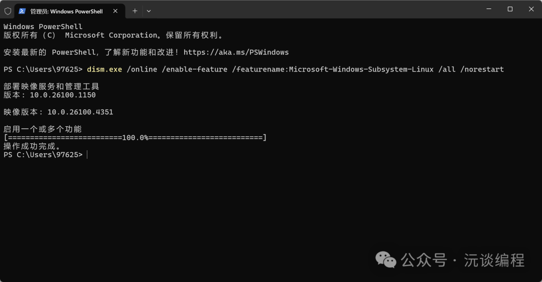 第一次使用需要先执行以下命令启用 WSL 功能: