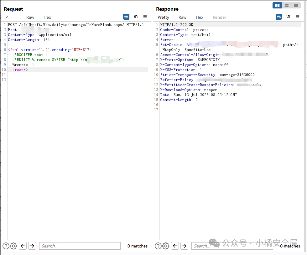 漏洞说明:金和网络是专业信息化服务商,为城市监管部门提供了互联网+监管解决方案,为企事业单位提供组织协同OA系统开发平台,电子政务一体化平台,智慧电商平台等服务。金和OA C6 IsHaveFTask.aspx 接口处存在SQL注入漏洞、XXE漏洞,攻击者可以利用 SQL 注入漏洞获取数据库中的信息(例如,管理员后台密码、站点的用户个人信息)之外,还可以通过XXE漏洞读取服务器上敏感文件或探测内网服务信息,甚至在高权限的SQL注入情况可向服务器中写入木马,进一步获取服务器系统权限。 漏洞类型:XXE和数据注入 漏洞特征: