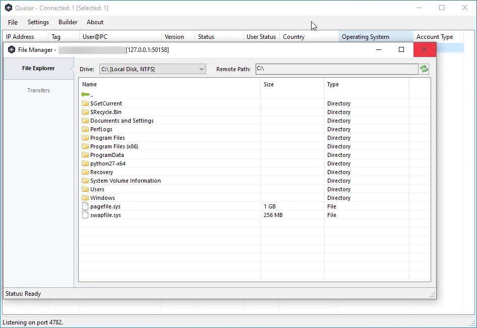 Quasar是一个免费(MIT License)、开源的远程管理工具,专为Windows系统设计。它使用C#语言编写,具有轻量级、高稳定性、易用性的特点。Quasar为远程技术支持、系统监控和员工监控等提供了强大的解决方案。兼容Windows 11、Windows Server 2022、Windows 10、Windows 8/8.1、Windows 7等多个操作系统版本。集成任务管理器、文件管理器、启动管理器、远程桌面、远程Shell、远程执行等多种管理工具。
