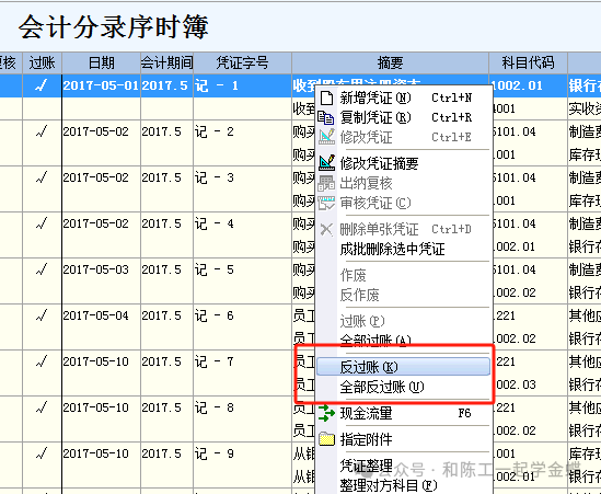 我们结完账后发现有凭证做错了,可以反回去修改吗?财务规则上允许吗?怎么反回去呢?财务一般每个月需要过账和结账,是对一个月账务的的确认,但有时也需要反回去调整,那么软件就提供了两个功能叫反过账和反结账,下面是金蝶不同版本的操作流程及快捷键2.1 系统默认没有反过账功能,需要我们手工去添加才可以添加反过账功能后,在凭证管理查询凭证出来后,鼠标右键里面就会有凭证反过账和全部反过账图1双击打开反过账工具,点里面的KISTools.exe,然后登录账套,就会弹出图2的界面,点全部反过账就行。3.2 结账与反结账,按住SHIFT键点期末结账,就会看到有反结账云版本没有过账和反过账的概念,反结账是和结账在一起的,在结账模版可以直接看到现在清楚每个版本怎么返回去调整了吧,不过平时做账还是要细心点为好,毕竟有时跨年,或者已经报税了,就不方便返回去调整了,只能做红字冲销。