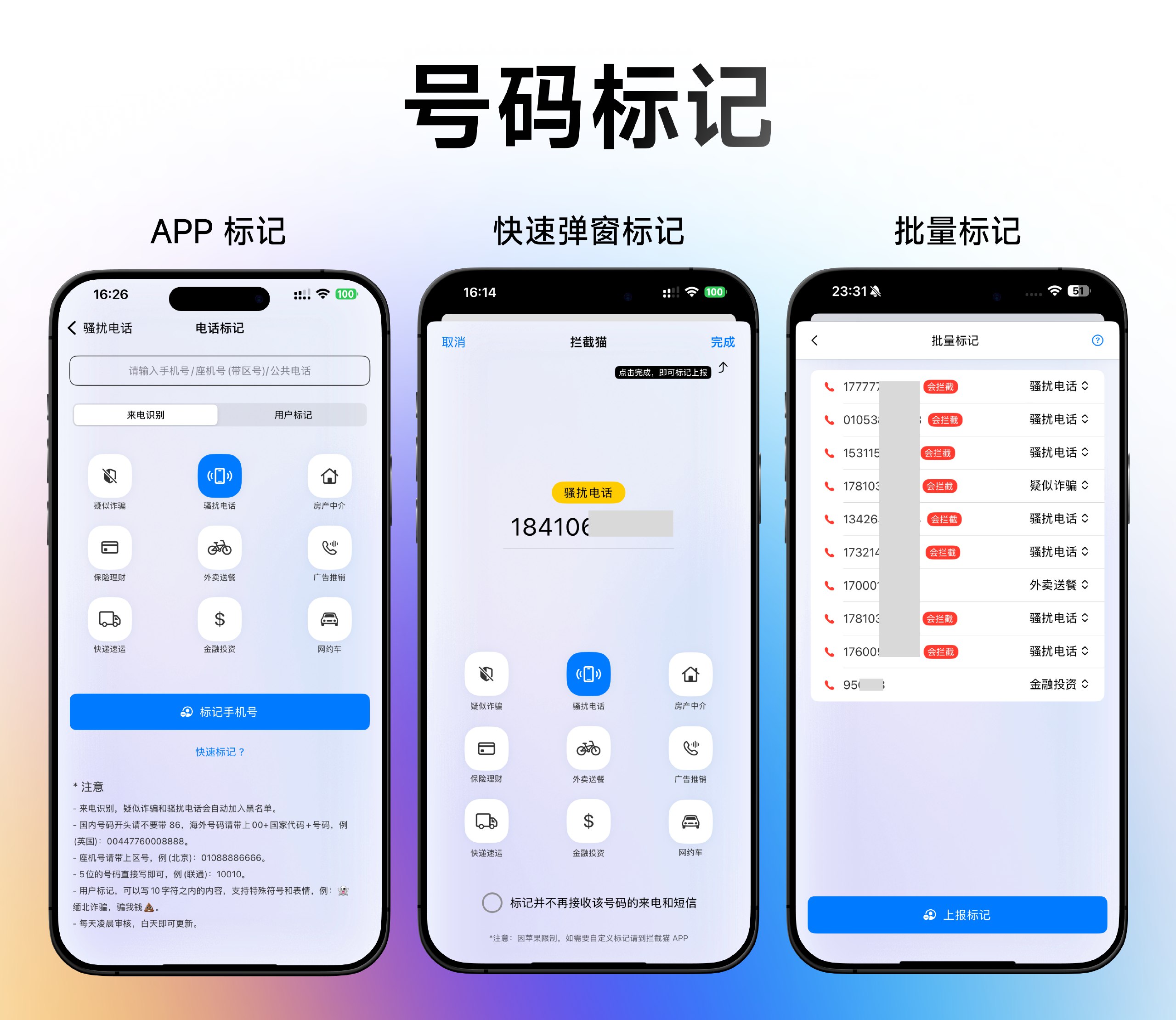 号码标记遇到漏网之鱼,只要标记,就会全网封杀,目前提供了三种方式