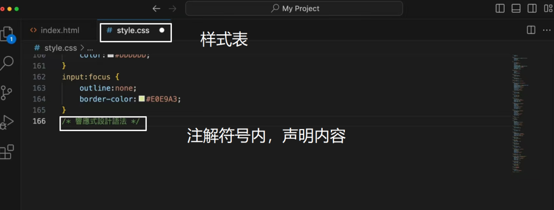 1.首先在CSS样式表底部,同时按下"ctrl"+"/"键,插入注解符号,声明以下为响应式设计的语法