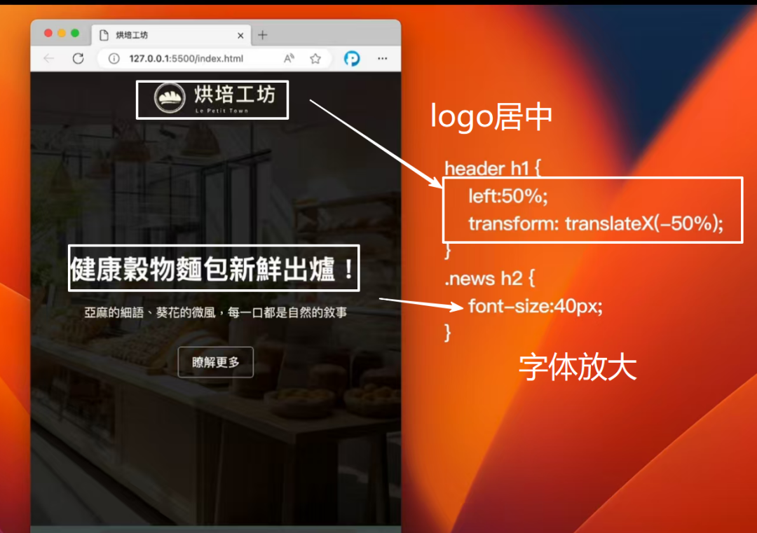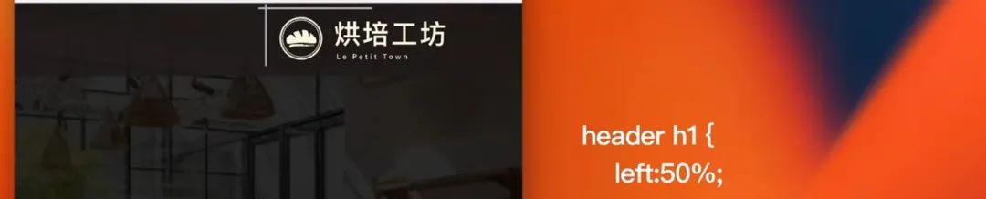 ◦ 将 <h1> 元素的左侧边界定位到父容器(header)的水平中心点