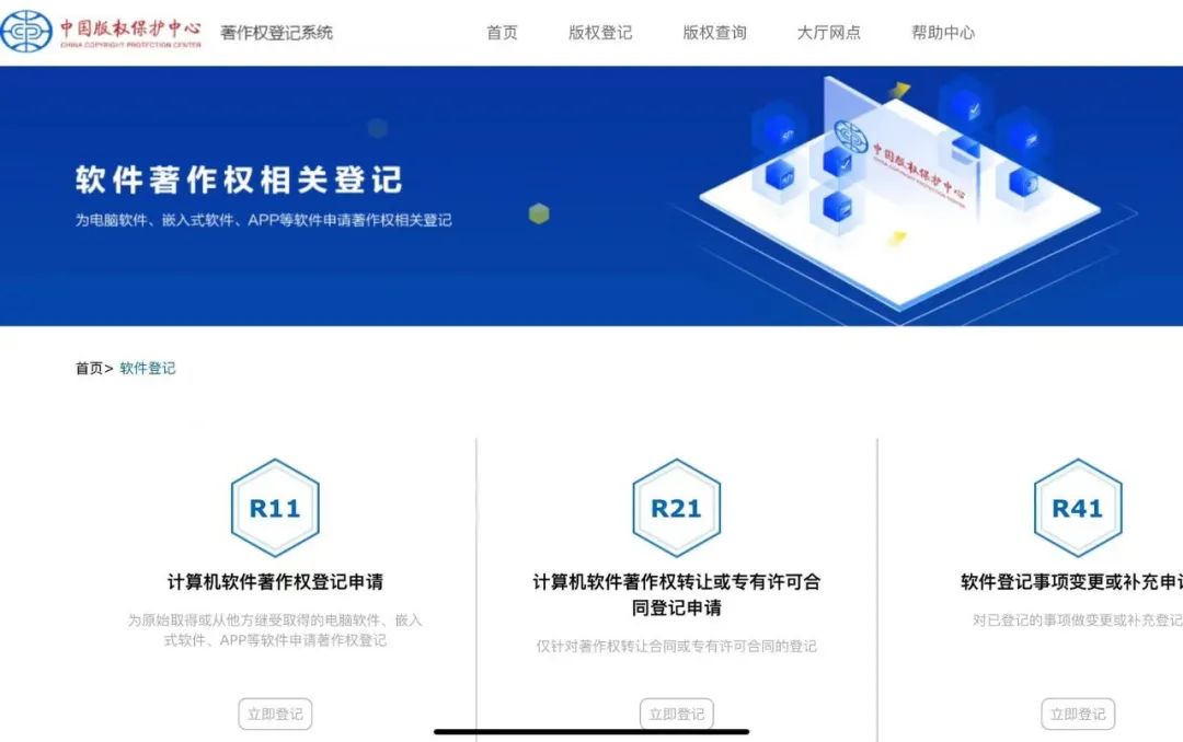 软著的定义 我们通常说得软著是指软件著作权登记证书,国内是由中国版权保护中心颁发给软件著作权持有人的法律文件,用以证明该软件作品的著作权归属。 因此如果在软件著作权受到侵犯时,持有证书人可以依法进行维权,包括但不限于提示诉讼、要求停止侵权行为、赔偿损失等。当然还可以作为软件交易重要权威凭证,确保交易的合法性和有效性;另外一些国家和地区对软著证书持有人可能享受税收减免或政府补贴等优惠政策等等。 政策的调整 2023-6: 软件版权登记改为网上办理,取消邮寄材料及现场登记。 2023-9: 中国版权保护中心缩短作品登记办理时限,从30个工作日缩短为25个工作日。 2023-11: 对电子证书底纹标识进行了调整。 申请的流程 1 身份及个人信息 前往中国版权保护中心网站,进入软件登记页面并注册登录: 中国版权保护中心 https://register.ccopyright.com.cn/registration.html#/registerSoft 本人申请:账号管理-实名认证 代理他人申请:需准备他人信息及身份证照片 合作申请:全部参与者的信息及身份证照片,合作开发协议。 ![]() 2 申请时填写信息 1. 软件全称 2.软件简称(若没有可留空) 3.版本号(V1.0或者V1.0.0) 4.权利范围(选全部权利) 5.软件分类 6.软件说明 7.开发方式 8.开发完成时间 9.发表状态 3 源码文档 提交登记软件源程序连续的前 30 页和连续的后 30 页,每页不少于 50 行,如不足 60 页,则提交全部源码。 快速源码提取工具: https://pan.baidu.com/s/1RAWkOrEcaqoEkPMV3OtbSg?pwd=2a6R