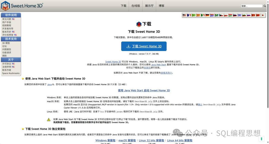 推荐直接通过官方网站下载 Sweet Home 3D: