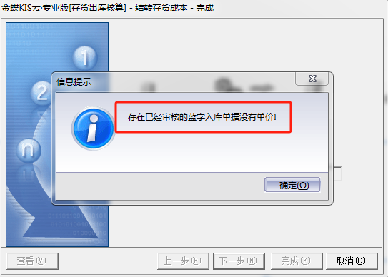 编者荐语: 作为业务财务结合的桥梁,存货核算的重要性不言而喻,常见的存货核算失败的原因和处理方法值得你收藏!! 有很多客户一到月底成本核算时就头痛,存货出库核算经常提示错误,成本计算表里面一大堆结转失败,红红的看着就头大,到底是什么原因呢? ![]() 今天给大家说道说道 首先存货出库核算的原理:按照成本计价方法,根据期初结存及本期入库的单价计算出本月出库的成本单价,当入库没有单价,或者负库存出库时,或者红字领料时,那么就相当于入库没有单价,出库的成本单价就会是0或者错误的成本单价,那具体有哪些情况呢? 1. 有未审核的库存单据,在期末结账,结账前检查里面,本期未审核的库存单据,查看明细,就会看到当月未审核的单据,因为月底结账前会审核这些单据,所以之前已经核算过的存货出库核算就会有问题,所以存货出库核算的前提就是所有的单据都已经审核 ![]() 2. 存货出库核算过程中,弹出本期有已审核的蓝字入库单据(包括所有采购入库,产品入库,盘盈入库,其它入库,委外入库)没有单价 ![]() 因为存货核算是对入库的单据进行加权平均或者先进先出,入库没有单价,那么出库单价就是错的,比如入库两次,第一次10个单价8800元,金额88000,第二次入库还是10个,没有填单价金额,那现在出库10个,成本单价又是多少呢?成本核算是成功还是失败的