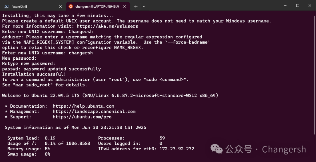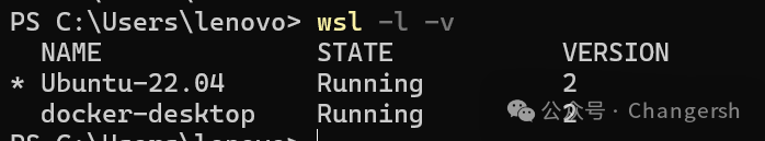 安装完成后,查看wsl版本