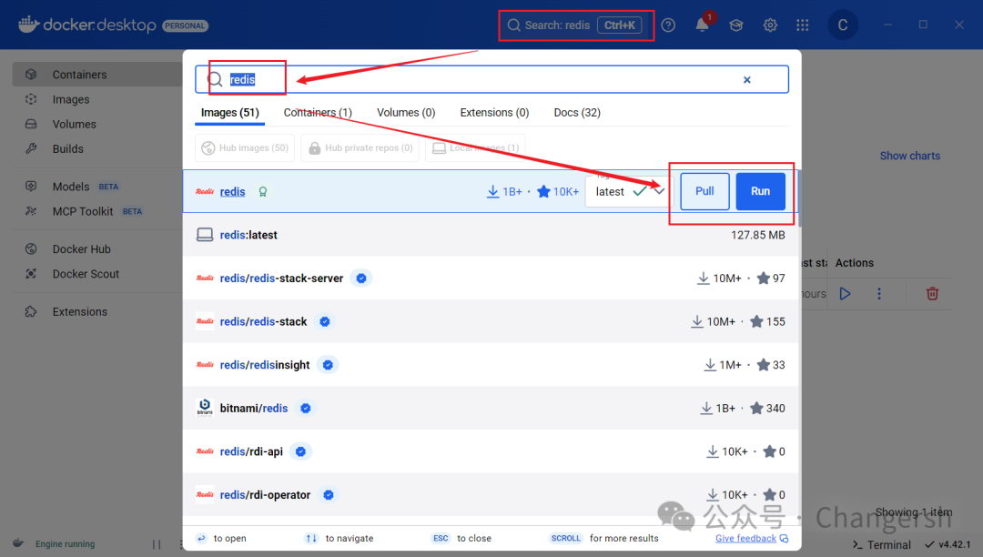 直接搜索,选择版本,选择pull
