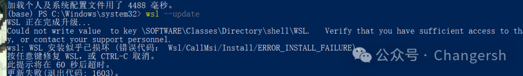 wsl的update报错:1603