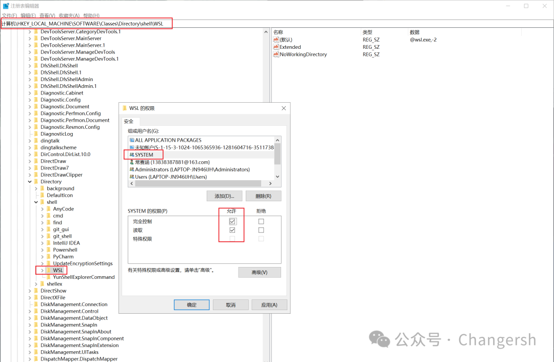 主要是里面的这个位置SOFTWARE\Classes\Directory\shell\WSL