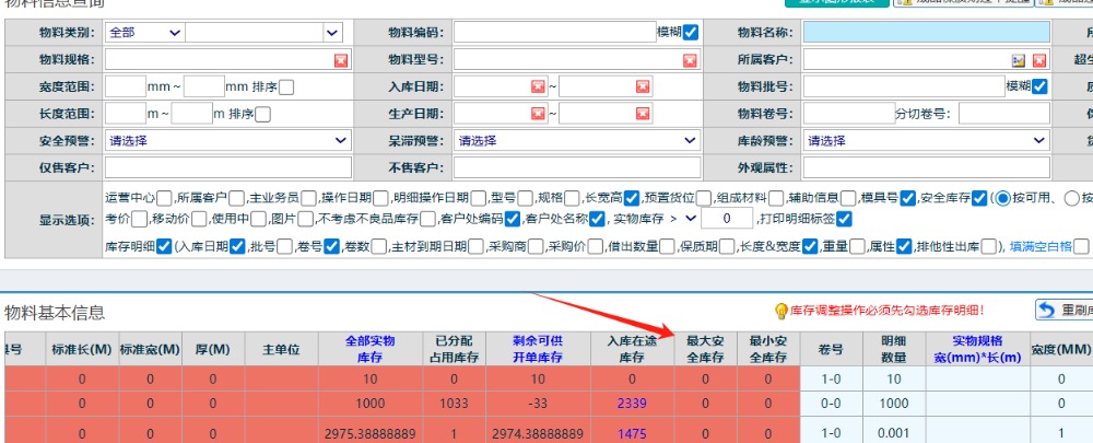 点晴模切ERP-库存查询界面勾上安全库存项后行变红