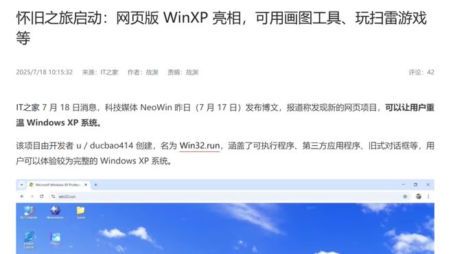 可能是上了岁数,托尼最近对 “ 怀旧风 ” 有点上头,玩上了胶片机,整了 CCD ,还买了小时候很喜欢、但没钱买的 iPod Touch 4 ,折腾些越狱、下载些老游戏啥的,玩得不亦乐乎。 然后我的情怀就被大数据盯上了 —— 上网冲浪的时候直接给我推送了一篇文章,说有这么个网页,能让用户重温 Windows XP 系统。 我这数码中登一听 Windows XP 马上就来了兴趣,反手打开这个名叫 win32.run 的网站一探究竟。 先映入眼帘的是一个经典的开机启动菜单( 我很震惊居然连开机这步都还原了 ),选择 “ 正常启动 Windows ” 之后进入了一个熟悉的加载界面,伴随着经典的“ 当↗当当↘↘当当→→ ”音乐响起 —— 啊,这湛蓝的天空,翠绿的草地。。。好像真的让托尼回到了千禧年初的那几个暑假。 要知道托尼以前也玩过这种网页版的怀旧系统,但那些都做的比较粗糙,一般都只有桌面能糊弄糊弄,最多给你做个扫雷画图啥的,真正能点击交互的图标没几个。 比如下面这是另外一个 “ Windows XP ” 模拟器,几乎只做了个壳子,绝大多数按钮要么不能点,要么点了之后弹一个 “ 没找到程序 ” 的报错,总之很敷衍了。 但是这次这个 win32.run 是托尼见过做得最走心的,不光外观上能做到一比一还原,桌面上的所有图标都可以点击打开。“ 我的电脑 ” 点进去有 C 盘 D 盘,还做了个可移动磁盘 F ,这些文件路径都可以打开。 甚至还允许大家在 “电脑” 里点击右键,新建文件和文件夹。。。 并且创建的文本文档双击就可以编辑。 另外,win32.run 还内置了一个还原 Word 98 大部分功能的 “ Microsoft Word ”,虽然编辑界面和真正的 MS Word 略有不同,但是基础的格式设置等能都能顺利使用。 而且还允许保存或者另存为。 而且这个网站的作者还送佛送到西,贴心提供了把文件 “ 下载到本地电脑 ” 的功能,这下真能实现“ 在 WinXP 中写稿,在 Win11 中查看 ”了。。。 另外我还发现这个作者想办法复刻了 Windows Media Player —— 音乐文件夹里也保存着 Windows XP 自带的两款示例音乐,贝多芬第九交响曲和 Highway Blues ,打开就可以听。 播放器界面上还会播放经典的粒子动效。 另外,这个网页 WinXP 里面还支持 ZIP 压缩包的编辑与查看 —— 桌面上默认放了个名字叫做 “ 一些东西 ” 的 zip 文件夹,双击就能解压,里面是一些预制的图片网页和文档,反过来也能把文件夹压缩成 zip 文件。 另外,为了还原 WinXP 的感觉,作者还往系统里放了不少小游戏。 游戏除了扫雷和蜘蛛纸牌这两个比较经典的之外,它还提供了很多来自第三方的网页小游戏,实乃牛马上班摸鱼之良品,不过让我觉得有点遗憾的是,这里面竟然没有三维弹球。。。 不过这难不倒一生要强的中国人! 因为托尼发现这个网页 XP 甚至还做了很多超越网页的 “ 越级体验 ” ,比方说它竟然支持加载 Flash 的 .swf 文件,我直接找了个三维弹球的 .swf 拖进这个网页,就实现了我在这个 XP 上玩三维弹球的愿望。 不光 .swf 文件,音频、视频、图片、文本等类型的文件都能直接拖进网页打开。。。 另外,这个网页 WinXP 里面的 “ Internet Explorer ” 也是能用的。。。 是的,你可以在网页里再打开网页。。。 而且作者还往这个网页 WinXP 里内置了个 Python 环境,可以跑脚本分析数据、另外还有阅读器可以看 pdf 和电子书。。。 另外最离谱的是,它还支持加载第三方的 Webapp 实现更多的功能。。。 讲真,假如你真是个怀旧的人,是真能把这网页全屏,然后当日常电脑用了。。。太离谱了。 总的体验下来,托尼感觉这网站的作者 u/ducbao414 是真的很喜欢 Windows XP ,把细节做的非常到位。 但可惜他是个外国人,很多我们国人专属的元素他没法儿共情,比如千千静听、暴风影音,还有托尼中学电脑课必玩的暴力摩托、CS1.6,如果将来能有大神把这些都加进去,那肯定能狠狠收割一波回忆杀。 不过没关系,现在网页技术也越来越强了,喜欢怀旧的小伙伴总是能找到适合自己的系统版本:比如 Windows 93、Windows 98、 Windows 7 。 即便不怀旧,这种网页技术还有很多别的用途:如果你之前没咋用过 Mac ,现在有网页版的 Mac OS 可供体验。 托尼在找相关网页的时候还发现了一个超前瞻体验服。。。Windows 12 你见过吗,有人已经把它在网页上做出来了。 没想到吧,你每天刷的网页还能整这么多花活儿。 托尼倒是希望以后能有类似的技术,能把经典的手机操作系统,像是锤子和 TNT 、塞班、Windows Mobile 用这样的方式留存起来,让我们随时随地去怀念智能机百花齐放的年代,体验这些老系统的魅力。 你最希望什么系统复活呢? 撰文:小柳 编辑:米罗 & 面线 美编:焕妍 图片、资料来源: it之家 Win32.run https://winxp.vercel.app/ 98js.org codecrafter-tl.github.io/Webintosh/desktop tjy-gitnub.github.io/win12/desktop.html 转自https://www.163.com/dy/article/K5R8FLQ8051196HN.html 该文章在 2025/8/4 8:33:05 编辑过 |