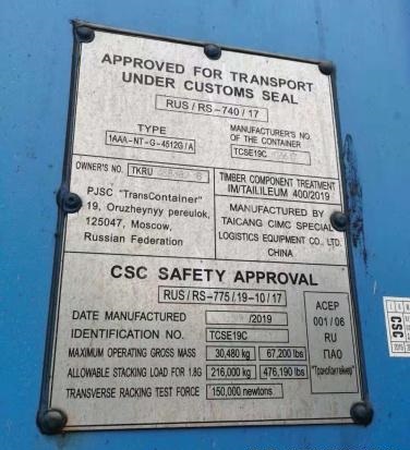 10.集装箱箱体上铭牌拍一张