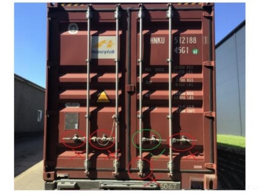 ——照片要显示集装箱全关门和箱号,以及必须体现施封状态和集装箱的4个角。