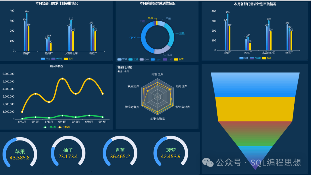 • • 图表集成: 可以方便地将流行的图表库(如 ECharts)集成到报表中,实现数据可视化。