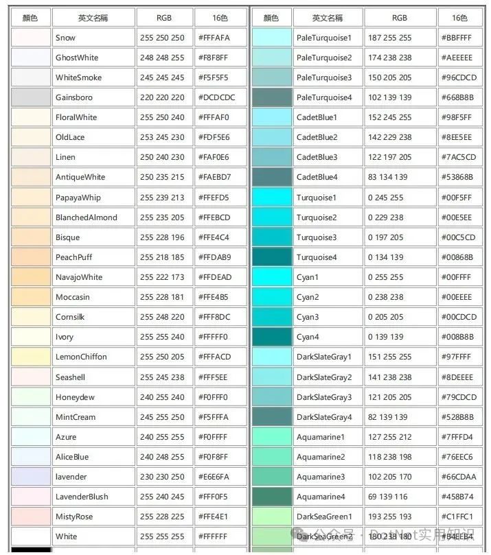 附:CMYK与RGB配色表