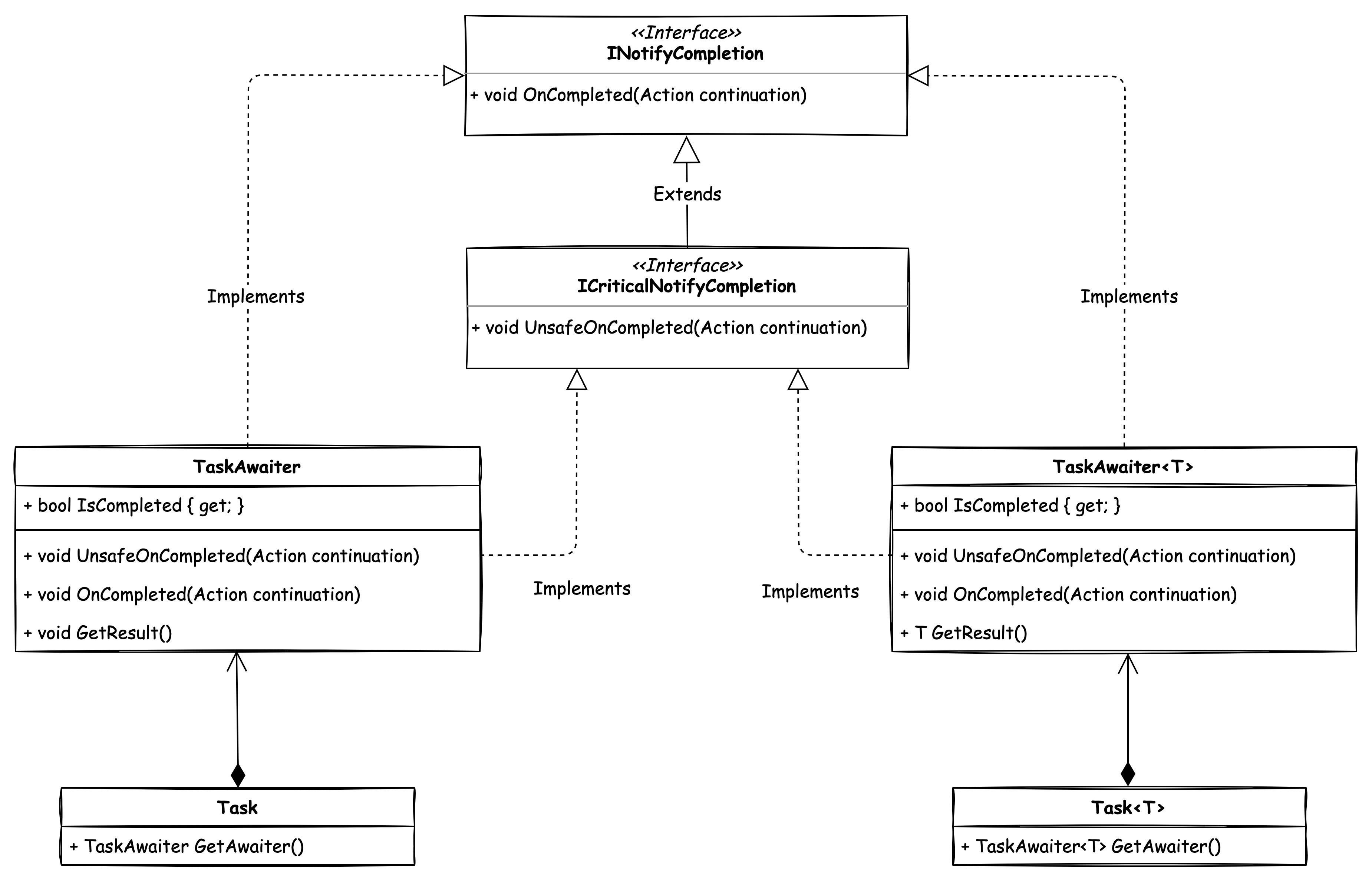 2. Awaiter:对 Awaitable 进行封装,负责与状态机进行交互。
