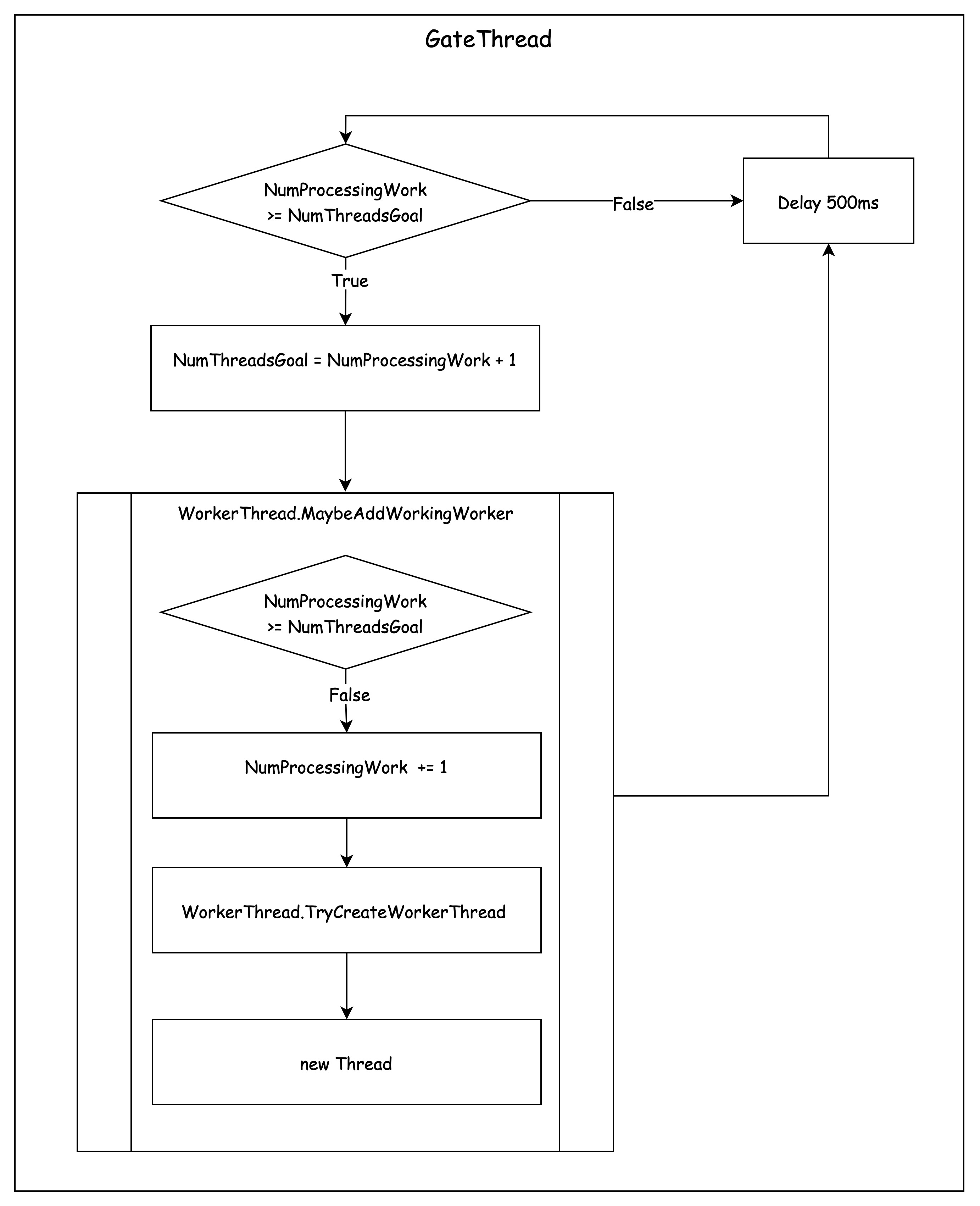 是一个独立的线程,每隔 500ms 进行检查一下,如果 NumProcessingWork >= NumThreadsGoal(WorkerThread.MaybeAddWorkingWorker