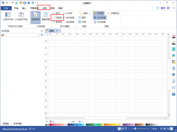 第二步:将“网格线”勾选住,绘图页面的网格线自然就显现出来了。