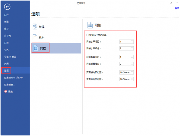 温馨提示:点击“页面布局”下的“网格”,或者“文件”——“选项”中的“网格”,均可对网格格式进行自定义设置,如下图所示。