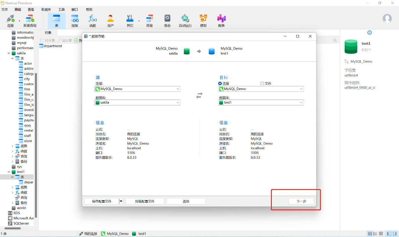 现在,让我们开始演示Navicat这一便捷且高效的数据传输功能。