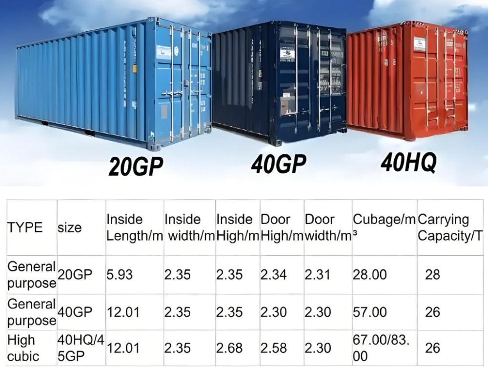 一般来说,在国际标准中,20GP、40GP和40HQ是三种最常用的集装箱