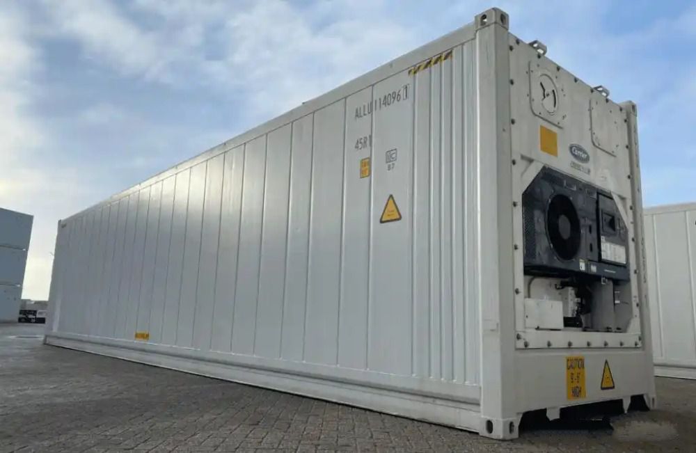5)冷冻箱:箱型代码RF;95码22R1,分外置和内置两种。温度可在-28℃~+26℃之间调整,内置式集装箱在运输过程中可随意启动冷机,使集装箱保持指定温度,而外置式则必须依靠集装箱专用车,船和专用堆场、车站上配备的冷冻机来制冷,这种箱子适合在夏天运输黄油,巧克力、冷冻鱼肉、炼乳、人造奶油等物品。