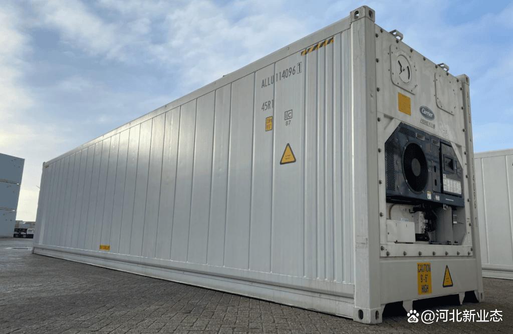 冷藏集装箱(Reefer Container)是一种专门设计用于运输需要保持特定温度的货物的集装箱。它配有制冷和控温系统,可根据货物的需求进行温度调节(-30 ℃到 30 ℃)。冷藏集装箱的电力依赖船舶和拖车的电力系统。