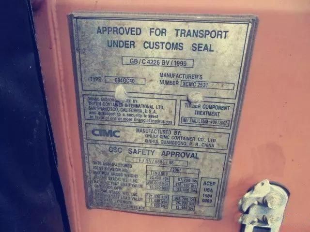 集装箱上主要的通行标记有;安全合格牌照、集装箱批准牌照、防虫处理板、检验合格徽及国际铁路联盟标记等。
