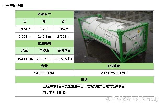 备注:这种集装箱是专为装运液体货物,如酒类、汽油、化学品而设计的