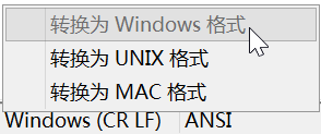 针对linux和mac、windows换行符不兼容问题,notepad++ 也可以很方便的支持,在底部状态栏双击可以很容易的切换: