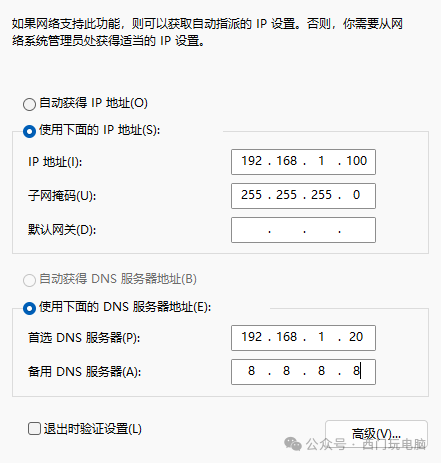 很多公司为了公司网络安全考虑,是不允许公司电脑访问互联网的,我们一般叫做外网,此外网非彼外网。公司内部的电脑只能访问公司内部服务器,比如OA、ERP、域服务器和文件服务器等。但是同时有些人有外网需求,一般公司内部都会有两条线,一条线用来访问公司内部网络,一条线专门用来访问外部网络。5、双击Internet协议版本4(TCP/IPv4)选择使用静态IP地址:6、配置静态IP地址,网管设置为空。例如下图,点击确定:7、我们双击第三步的外网,一般默认配置都是自动获取IP。如果已经是自动获取这一步也可以不做,如果想要配置固定IP可以参考第4-6步。1、开始--搜索框输入cmd--以管理员身份运行:因为内网的IP地址段是有限的,一般也就十几个大公司可能多一点,小公司可能还不到十个,做路由也简单。不像外网的IP太多,没法做路由所以只能选择内网做路由,外网直接设置网关就好了。1)、例如:如果想让192.168.2.0地址段走内网网段,我们可以这么加一条路由。route add 192.168.2.0 mask 255.255.255.0 192.168.1.1 -p