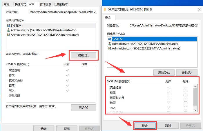 3.若不正确,可以点击编辑按钮,修改权限并保存,确保当前用户具有足够的权限来访问或修改文件。