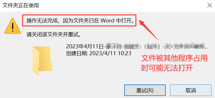 如果文件正在被其他程序占用,可以尝试关闭相关程序或等待其完成操作后再尝试访问文件。当无法确定哪个程序在占用文件时,可尝试关闭所有程序,重新启动计算机,以释放文件的占用状态。
