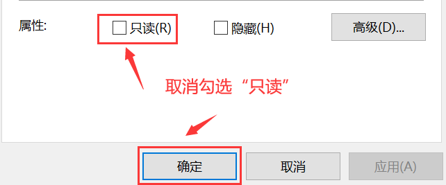 如果文件或文件夹受到保护,可以尝试解除其保护状态。一般可以通过右击文件或文件夹,在【常规】选项卡中取消勾选只读