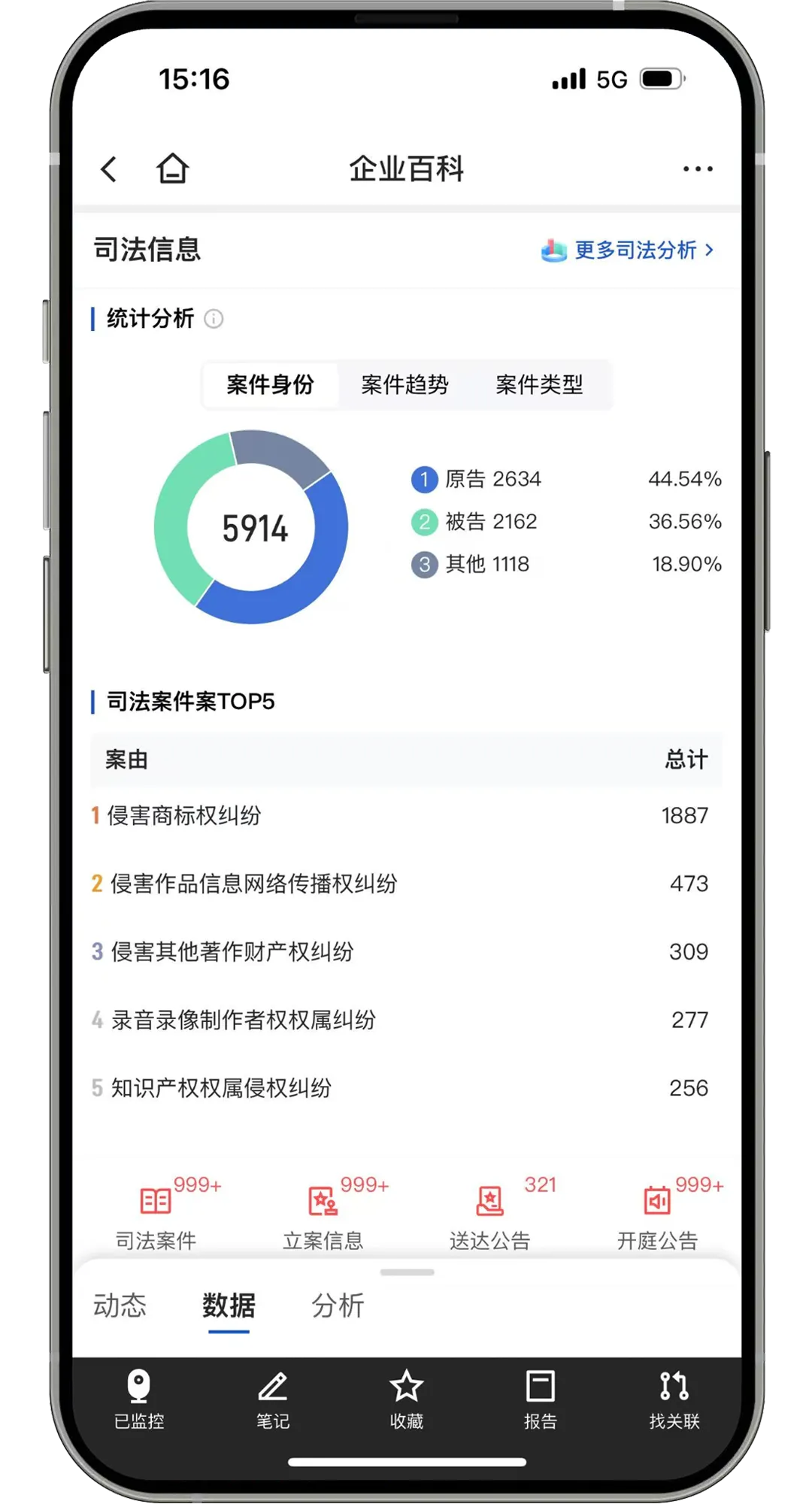 从立案到判决、执行,企业涉诉的每一步进展都能查;还可以能看到同类案件的判决结果,预判风险,这些在其他工具里要付费的功能,在企百科这里全免费。