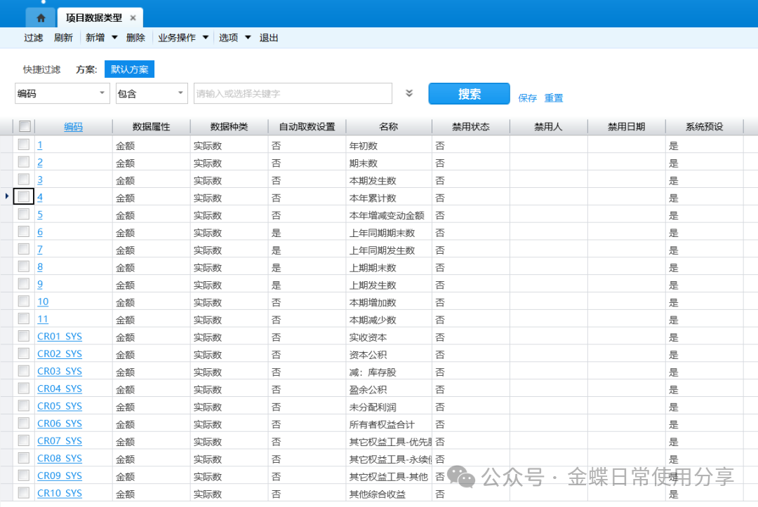 【功能菜单】:【财务会计】->【报表】->【基础资料】->【项目数据类型】