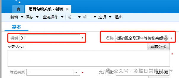 【操作说明】:新建项目勾稽关系,维护编码及名称;