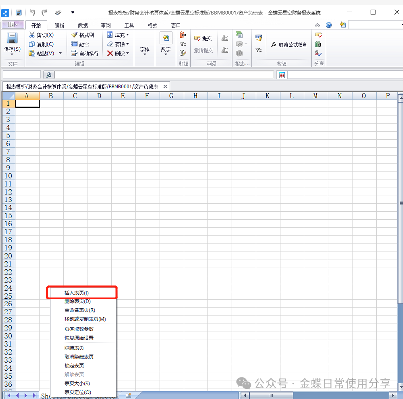 2.编辑报表模板:报表模板的表页有两种编辑方式:直接插入系统预置的表页或者采用批量填充模板样式方案;
