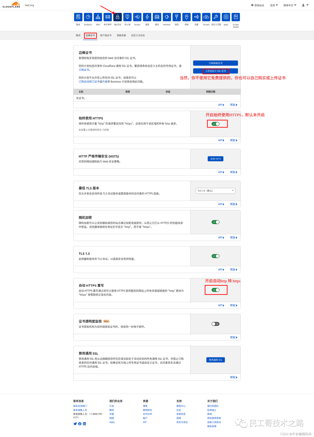始终https(CF网站默认有提供,但是未启用,不想使用CF的可以上传证书)