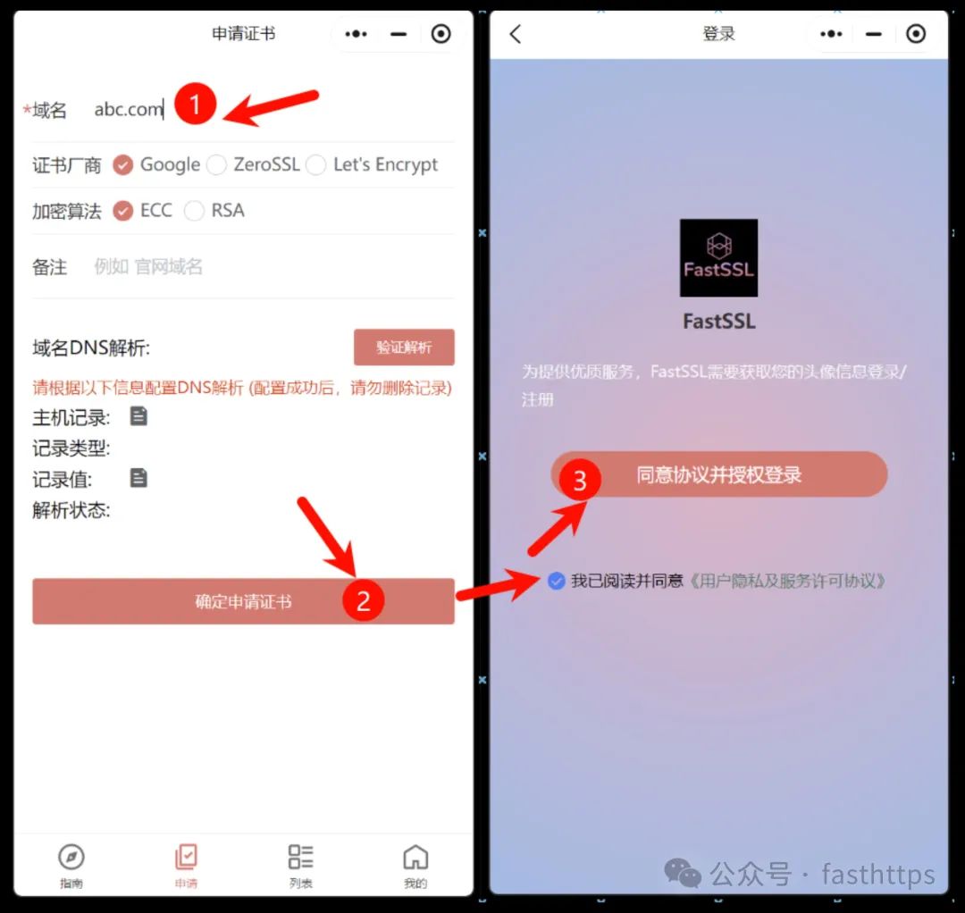 一步一步教你:利用免费的可视化工具 FastSSL 微信小程序申请HTTPS证书