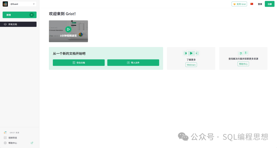 Grist 提供了在线快速体验环境,输入以下网址即可: