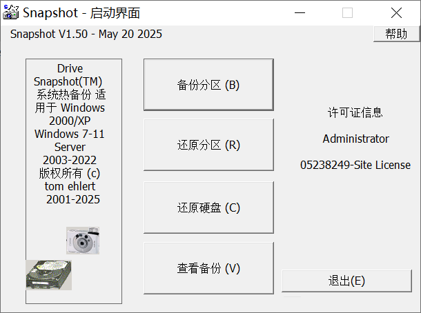[点晴永久免费OA]Snapshot:一款功能强大的磁盘备份还原软件v1.50.0.1744中文绿色便携版