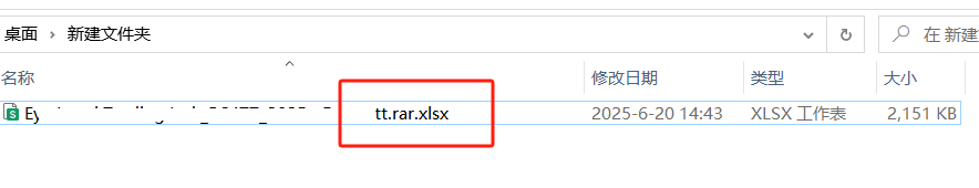 首先我们要把excel文件的后缀扩展名称更改为.rar文件格式。但是我们不能直接更改成.rar扩展名,因为,现在系统中没有将扩展名显示出来,这时我们需要把扩展名显示出来。如果直接在excel文件后面加.rar,可以看到,文件还是excel格式,并不是压缩包格式。