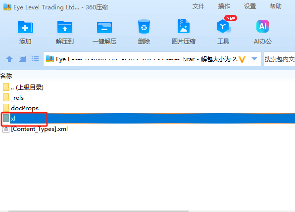 这时,我们再解压文件,找到文件夹中的xl文件夹。