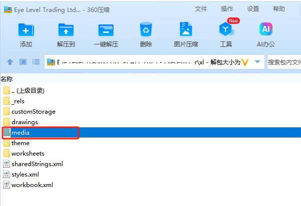 在这可以看到,已将所有的excel中的图片都已经导出到media这个文件夹中了。