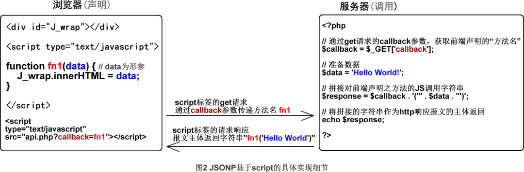 最后,这个由后端拼接的、带着实参的“JS方法调用片段”便通过前端script标签发起的http请求的响应报文从服务器返回给浏览器,并在浏览器端自动执行。