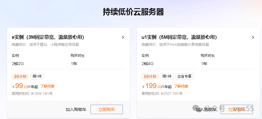 阿里云还为企业用户推出了更高配置的ECS实例,如2核4G的u1实例,首年价格仅为199元。这些实例提供了更高的性能和资源保障,适合对性能要求较高的企业应用。
