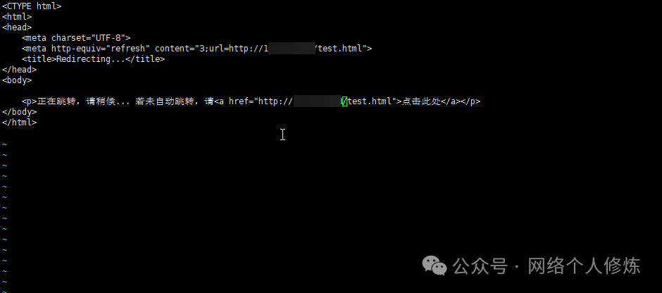 其中content="3;url=..."表示 3 秒后自动跳转到目标 URL,可根据需求修改等待时间和目标地址。